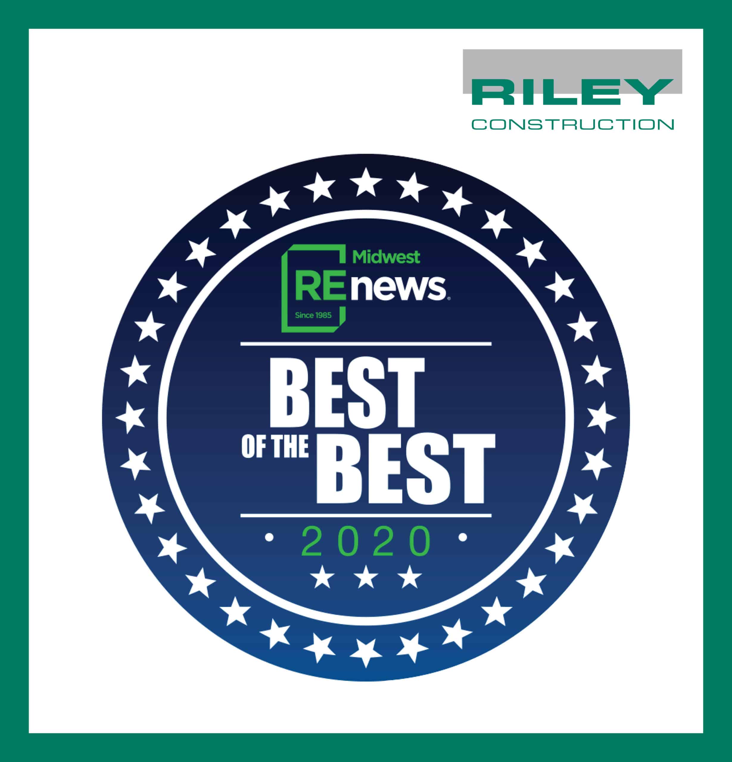 We did it! Riley has been listed among the “Best of the Best!” for Top Construction Companies in 2020 by Midwest Real Estate News Magazine. Riley is ranked #33 in the region, up four spots from last year!