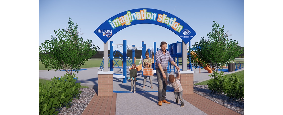 All aboard the Niagara Imagination Station! Construction will begin soon on an outdoor playground for the Boys & Girls Club of Kenosha, donated by Niagara Cares. Riley Construction will be donating the labor to create a concrete walk and picnic area. The playground will feature three slides, swings, a jungle gym, a spinner, picnic tables, monkey bars, a balance walk, and more. Here’s a sneak peek at the renderings created by our team to share the vision for this amazing project!