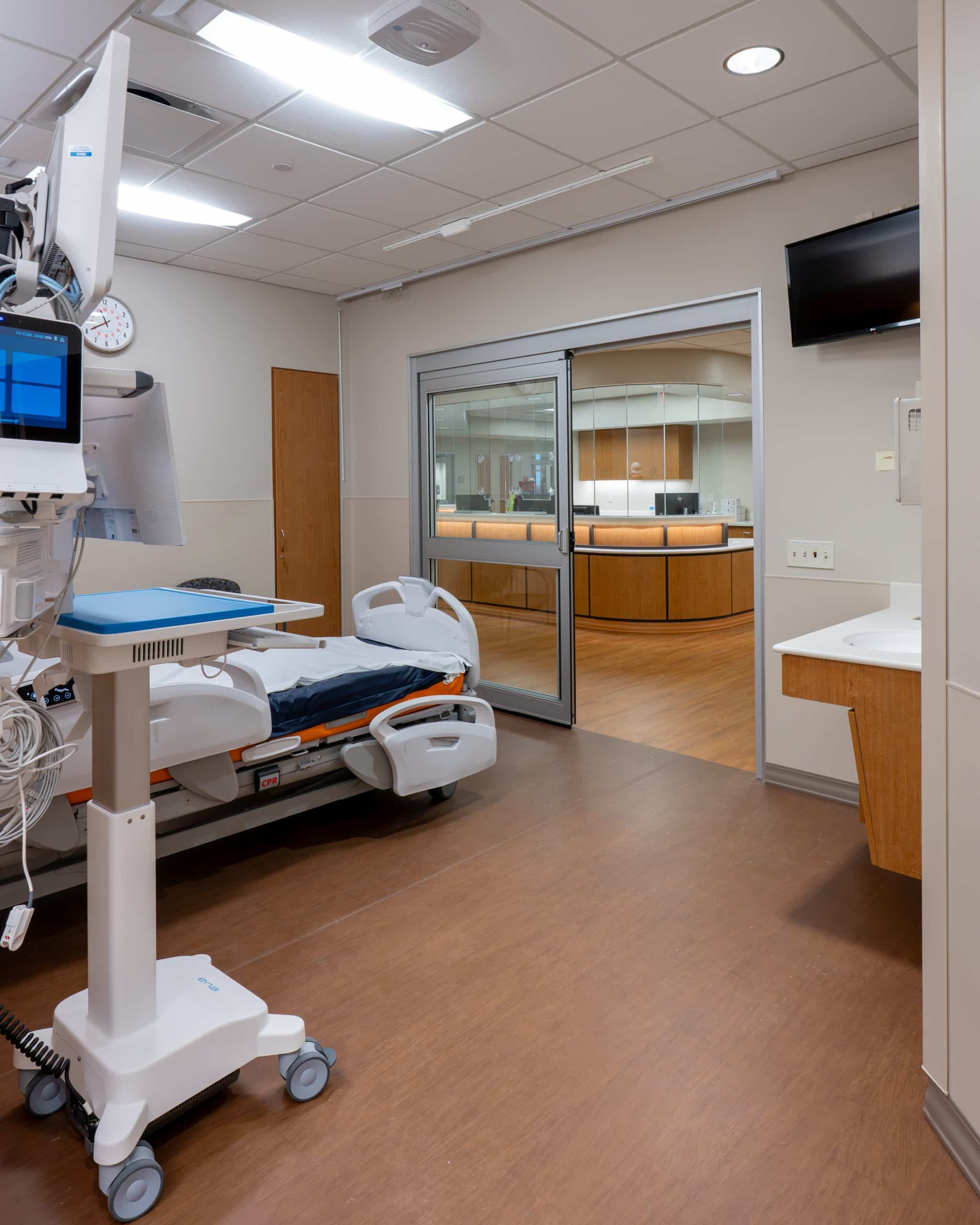 The new wing includes 12 inpatient rooms and 6 observation rooms. Each room was carefully designed to enhance safety, functionality, and patient experience. The layout allows healthcare staff to work efficiently while maintaining clear visibility and access throughout the unit.
