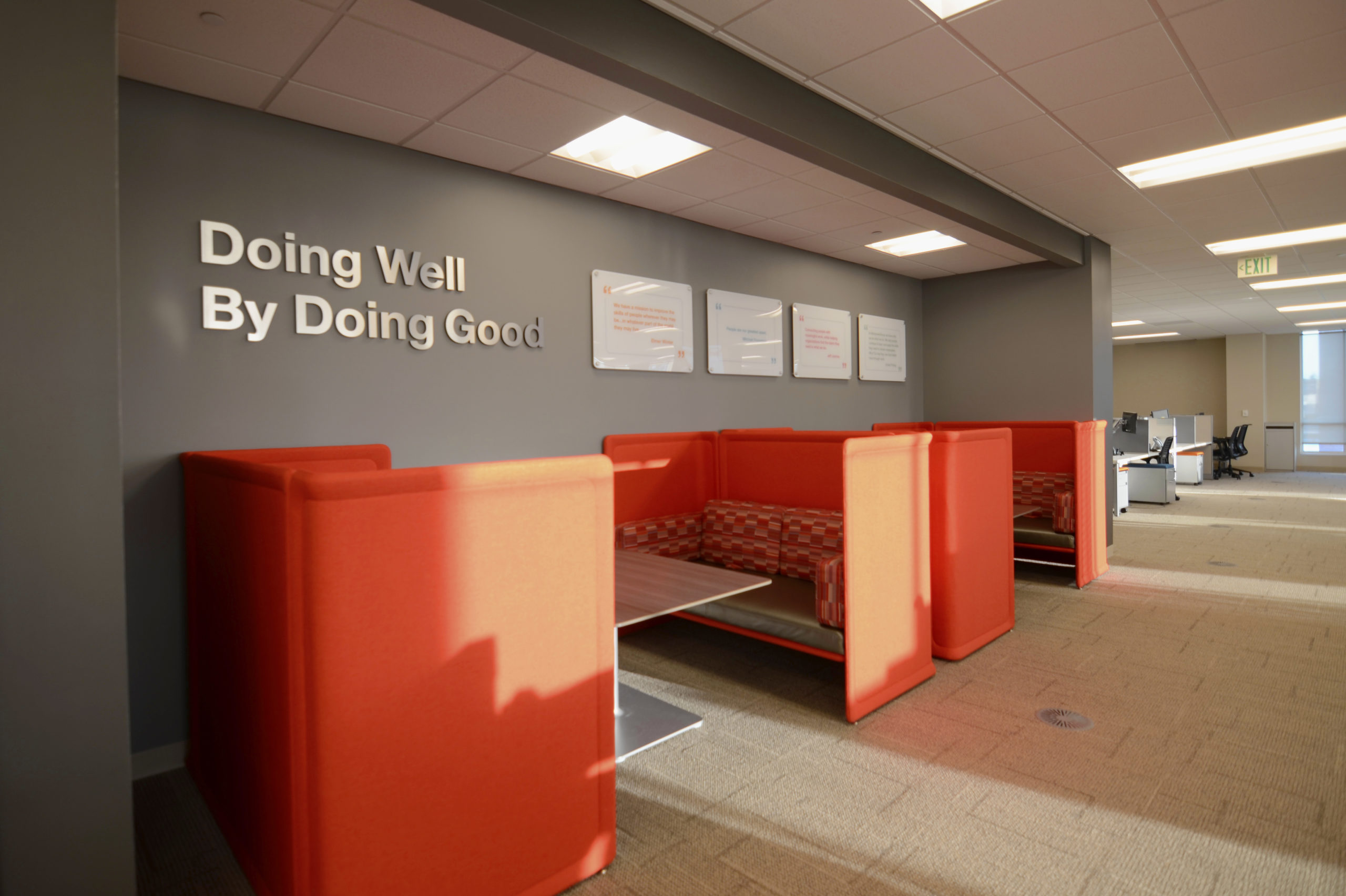 Located in the heart of downtown Milwaukee, ManpowerGroup teamed with Riley on a major renovation on the second floor of the staffing firm’s corporate headquarters. The vision of the owner was to create an efficient and comfortable space that would accommodate an additional 200 employees. Work included the addition of restrooms, break areas, copy rooms, offices, cubicle and common areas, and conference rooms. High-end finishes are featured throughout.