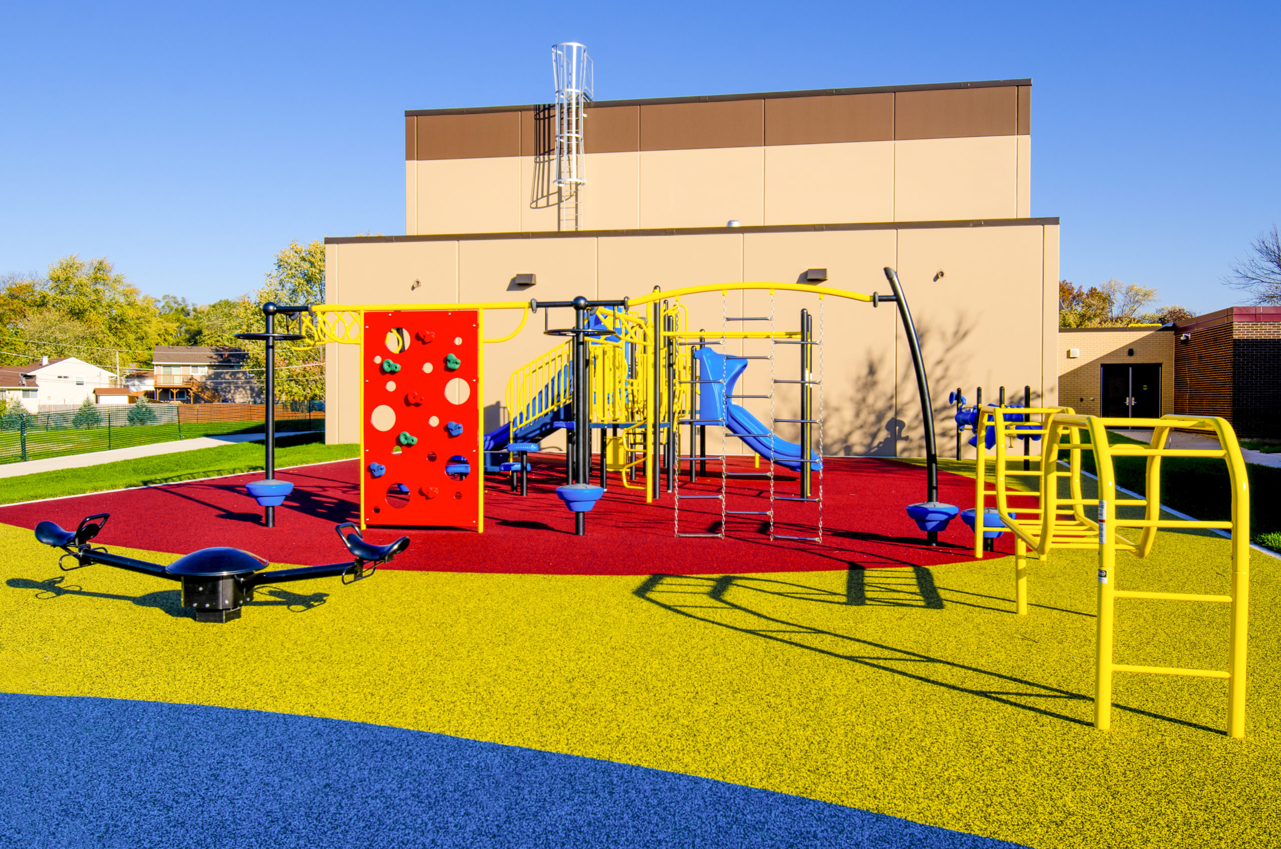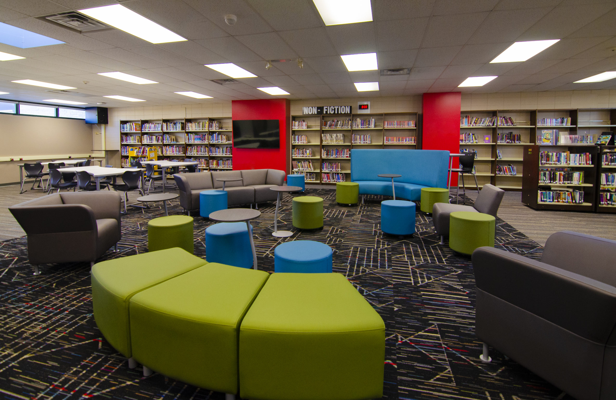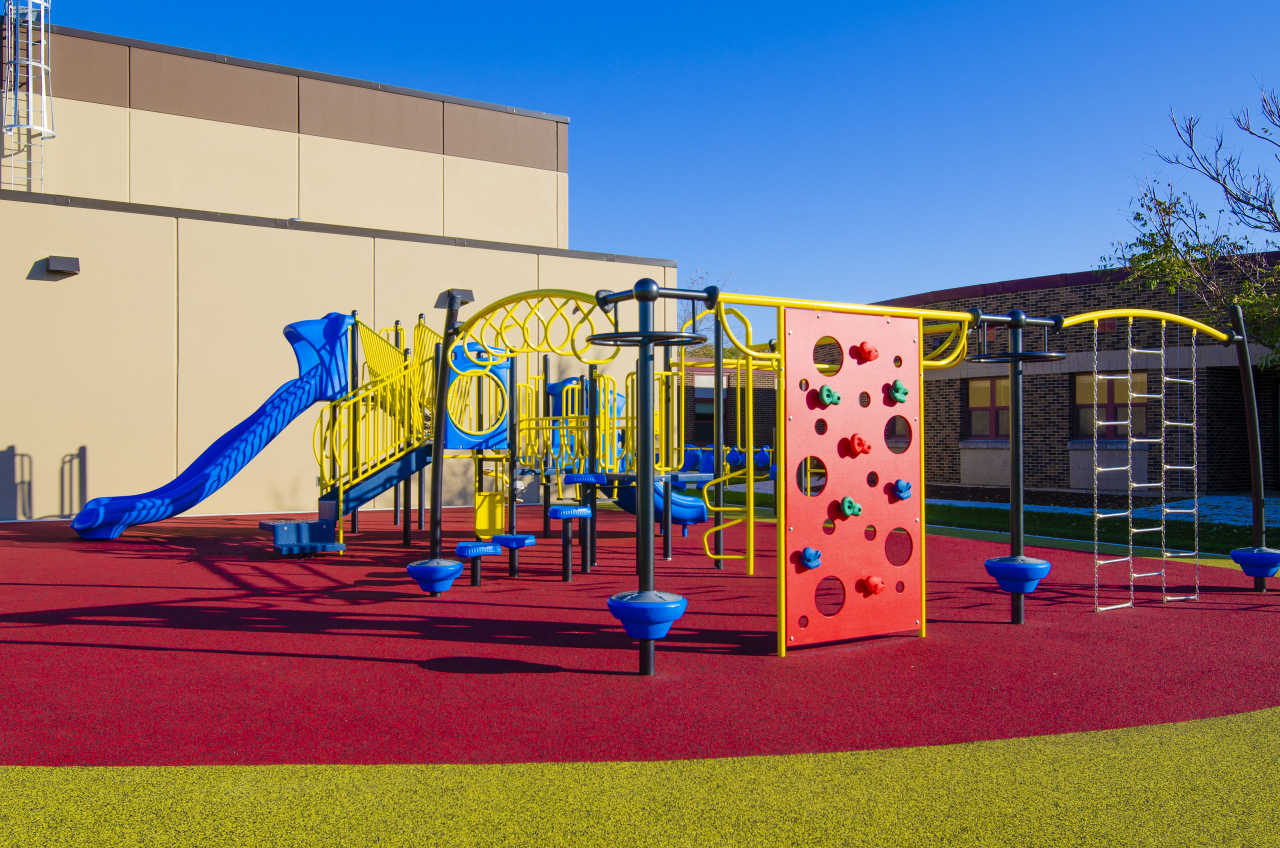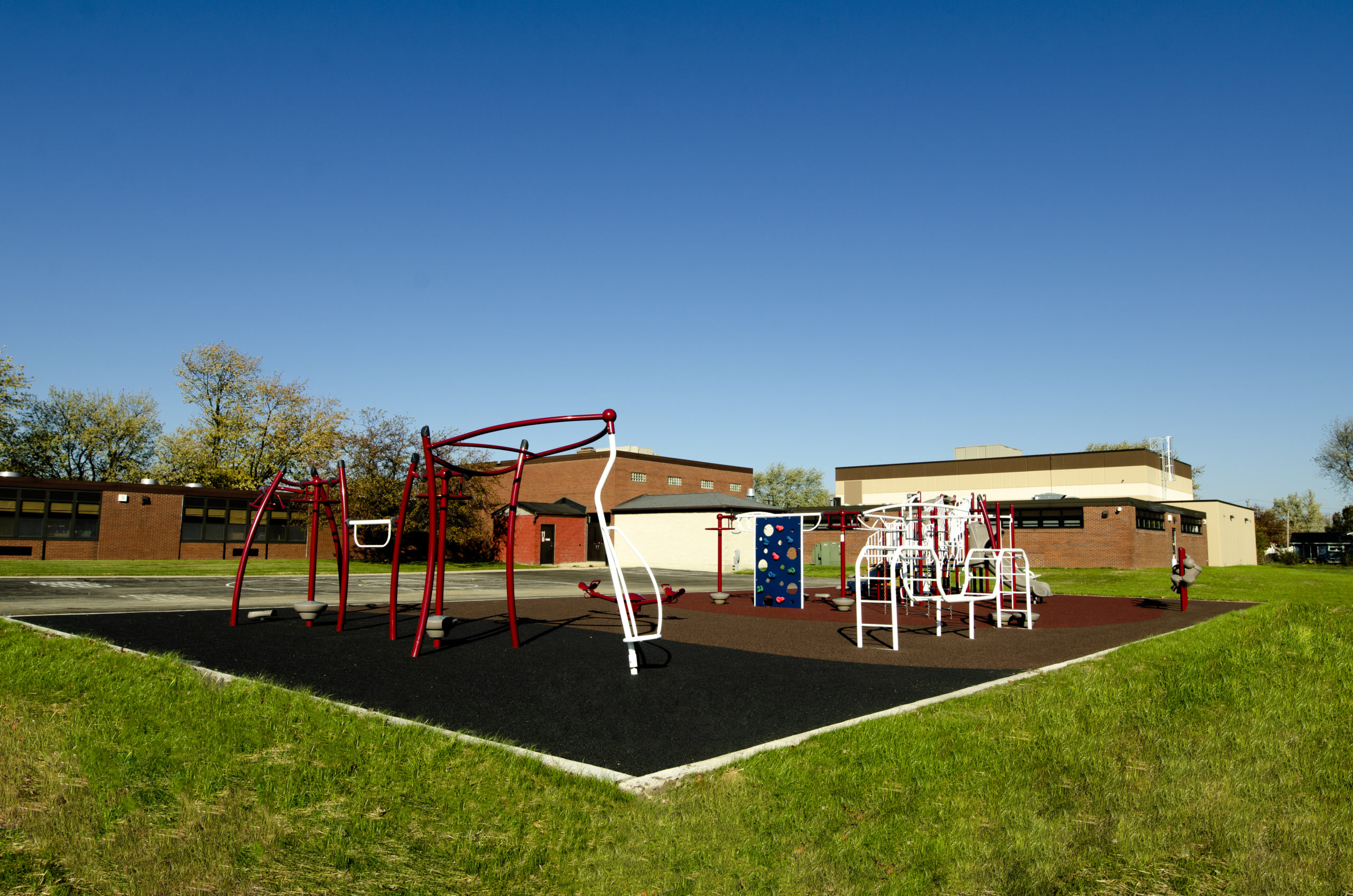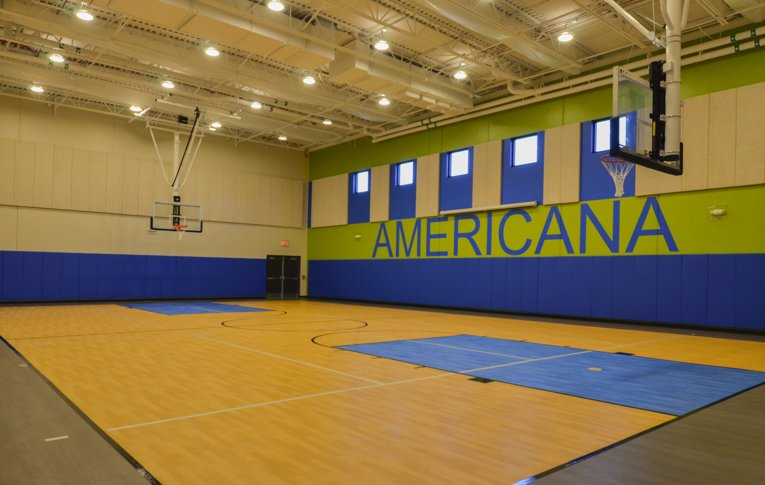 Americana: Includes a 6,000 SF gym (MPR) addition and renovation of the library(LMC). The gym addition includes basketball courts, volleyball courts, acoustical wall and ceiling panels, resilient flooring. The sitework includes a new poured surface playground, new stormwater detention basin and new parking lot, which incorporates student pickup/drop off.