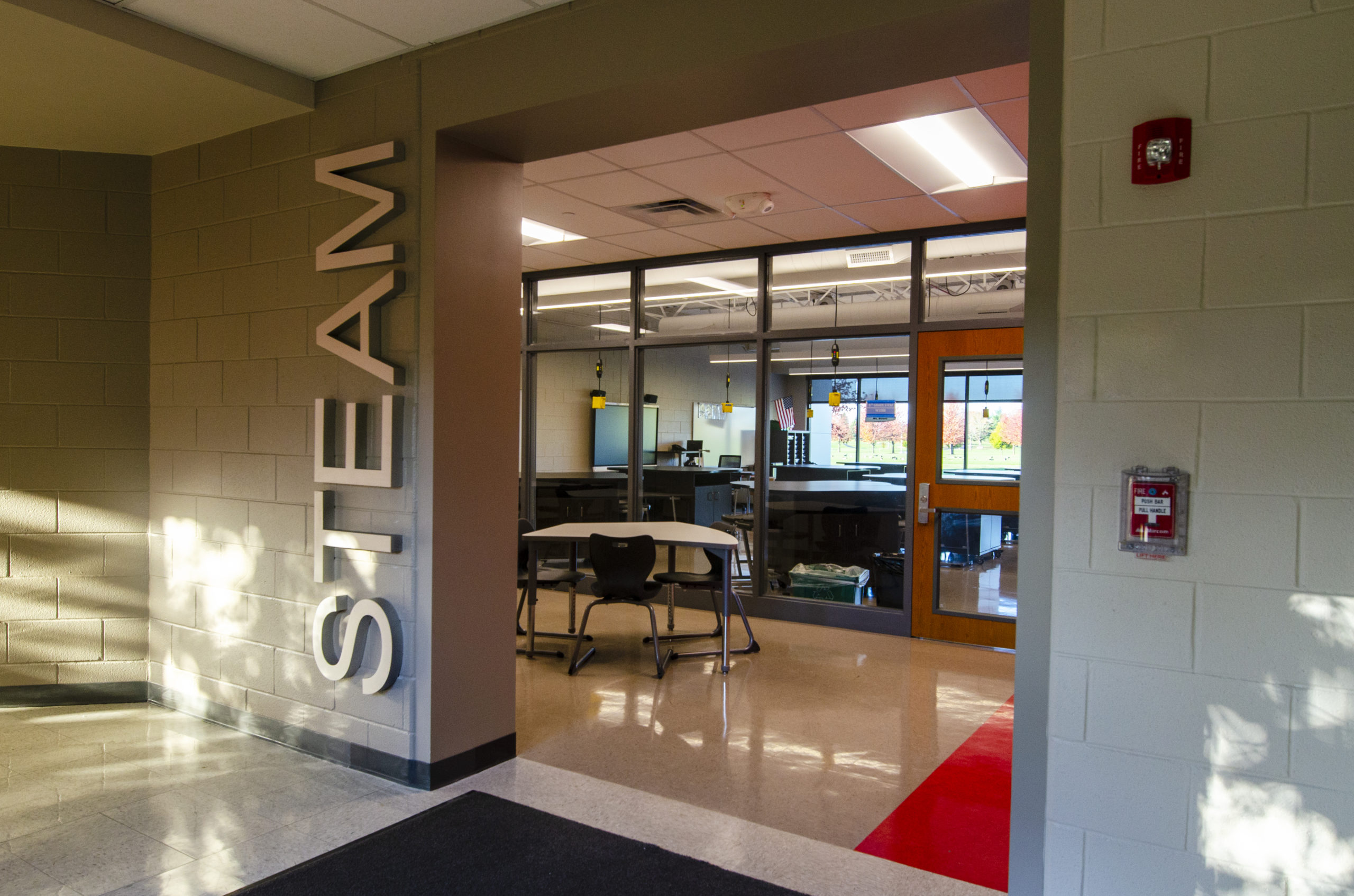 Glenside Middle School: Includes a 1,300 SF STEAM addition and renovation of the library (LMC), science and STEAM classrooms, bathrooms, and life safety features. The sitework includes a student pickup and drop off loop and new stormwater detention basin.