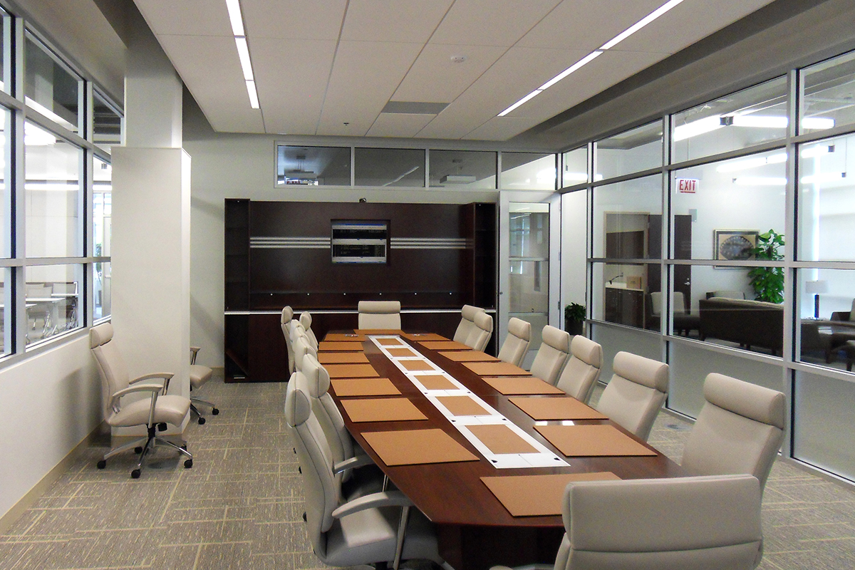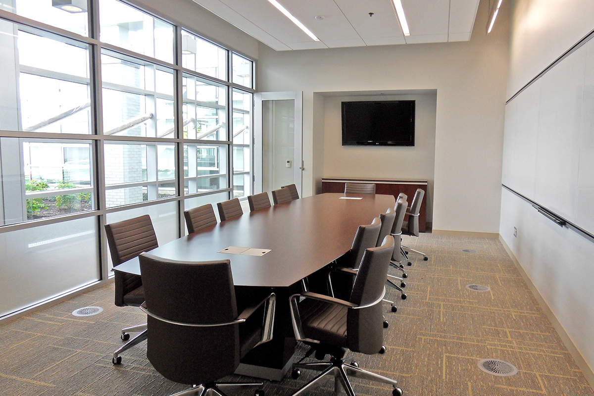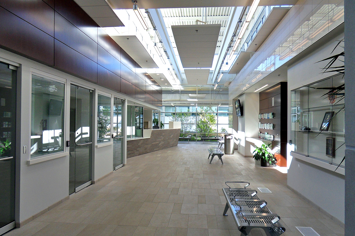 • Interior courtyards were“carved out” of the excess square footage allowing natural day lighting into the center of the building; the existing roof was raised to create clerestory windows, flooding the lobby with natural light.