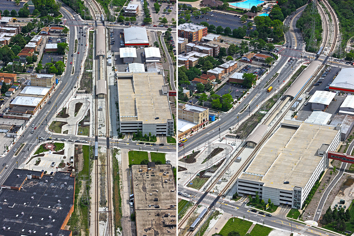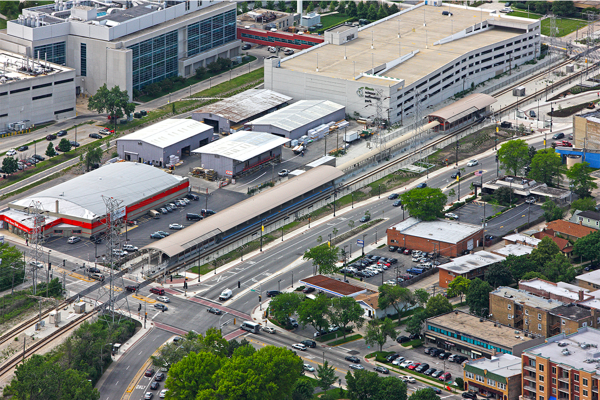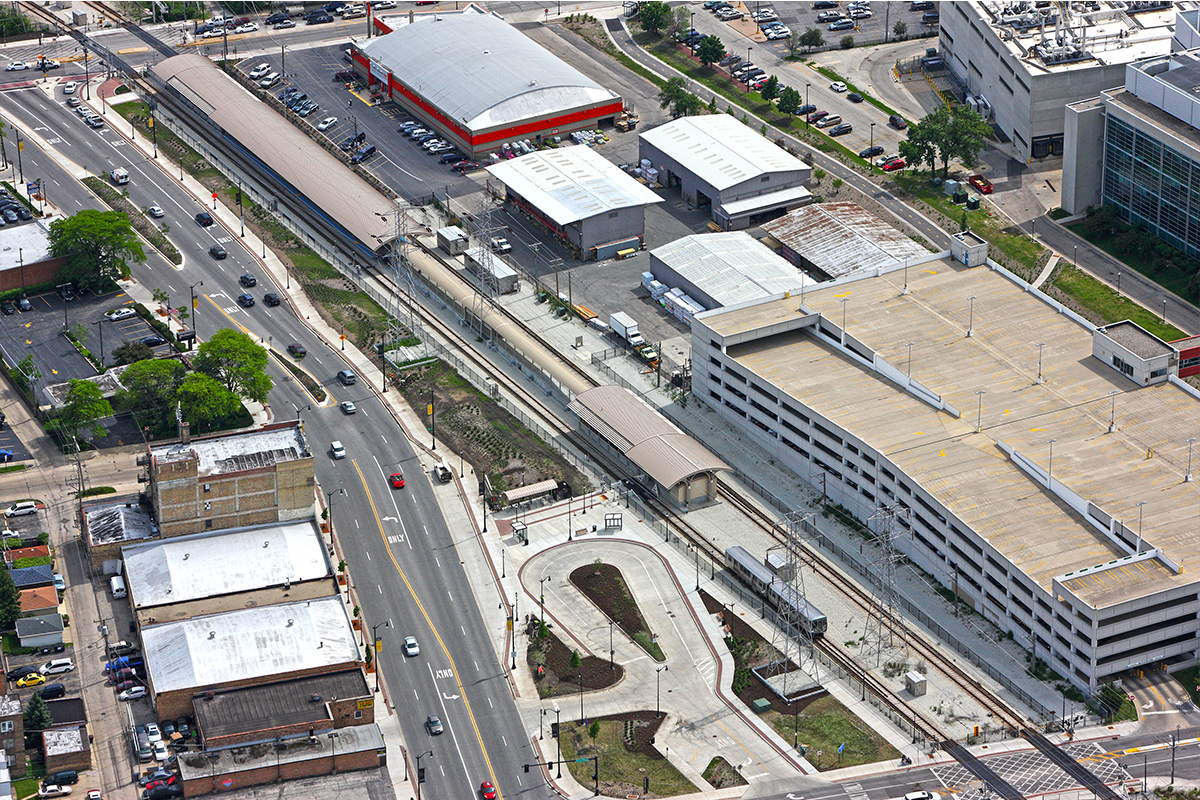Riley Construction completed a “kiss and ride” train station for the CTA and village of Skokie. This Yellow Line stop was the first station added since the route opened in 1964 as the “Skokie Swift” and provides service beween downtown Skokie and Chicago’s Illinois Science + Technology Park. The station was built on the same site as the original station. Features include: