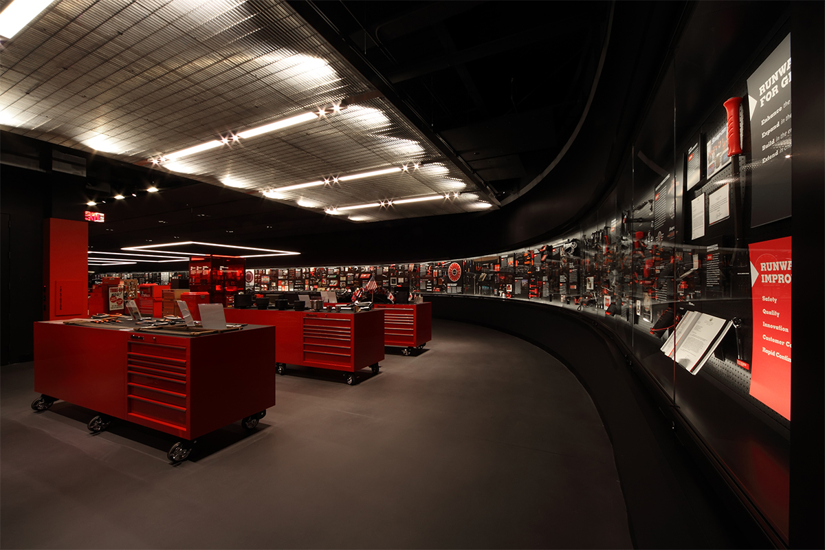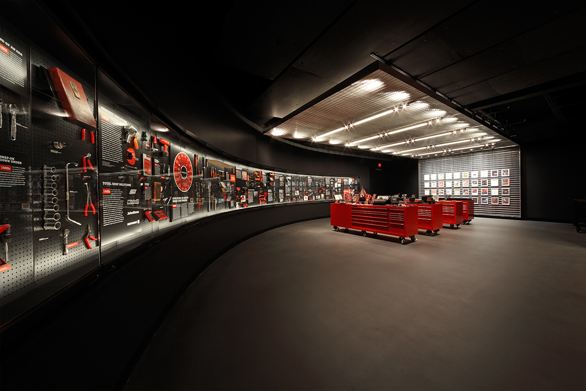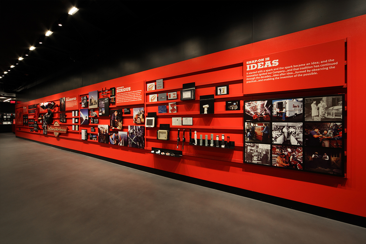 The project encompasses a major interior remodel and 2,500 SF expansion of the Snap-On’s corporate museum. The project includes a galley kitchen as well as storage space, and auxiliary support office and maintenance areas for the adjacent auditorium. The expansion incorporated existing warehouse space, transforming the entire facility into a showcase for Snap-On with the ability to entertain up to 60 guests.