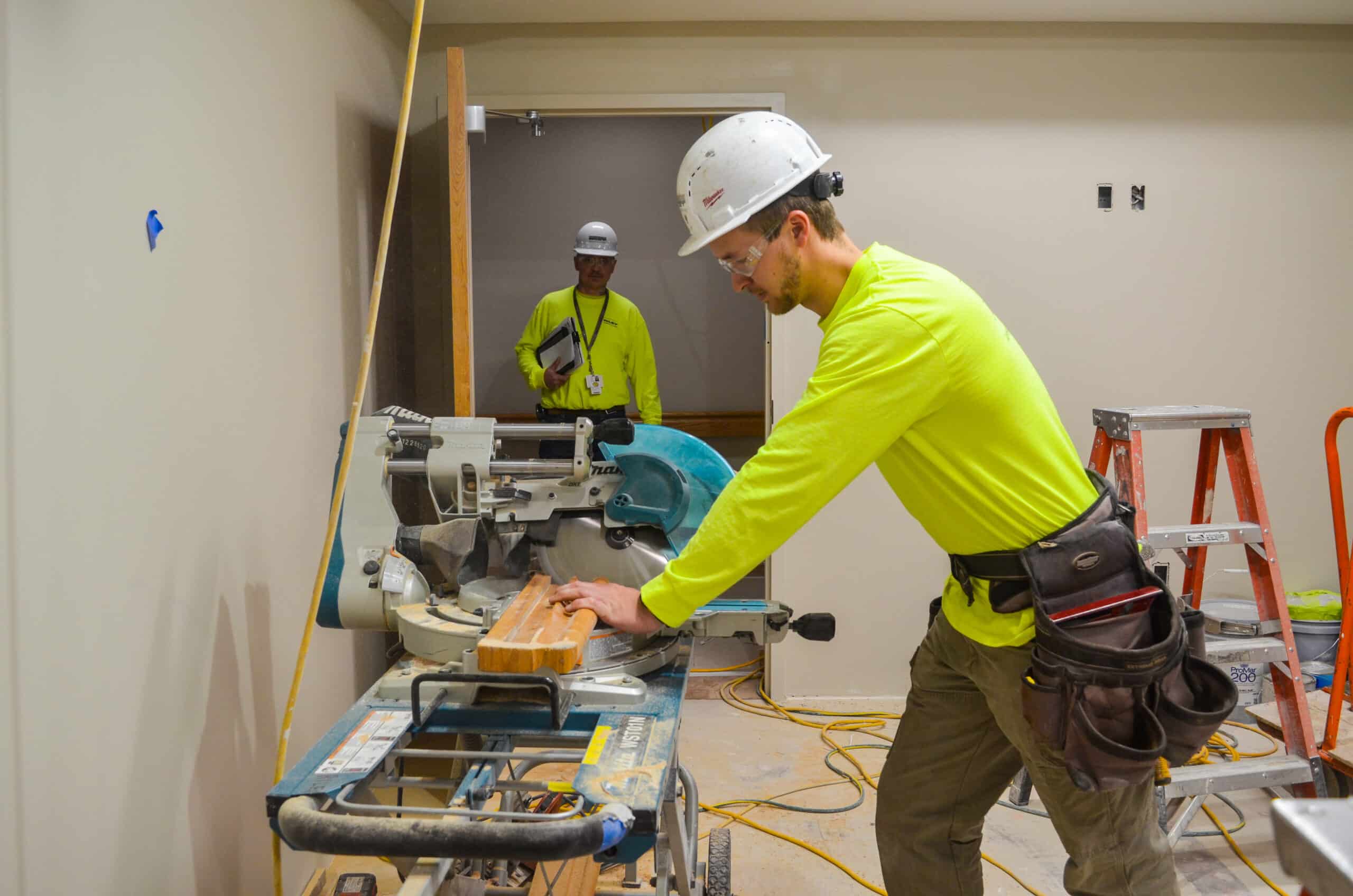 Nathan has recently completed his apprenticeship and has worked hard for the last four years to become a new journeyman carpenter at Riley. The carpentry apprenticeship consists of 3-4 years of field experience and classroom instruction at the Carpenter Apprenticeship Hall. Riley pairs an apprentice with a seasoned journeyman carpenter. Nathan has been working with Superintendent Chris Ruffalo and Carpenter Foreman Jason Baltic.