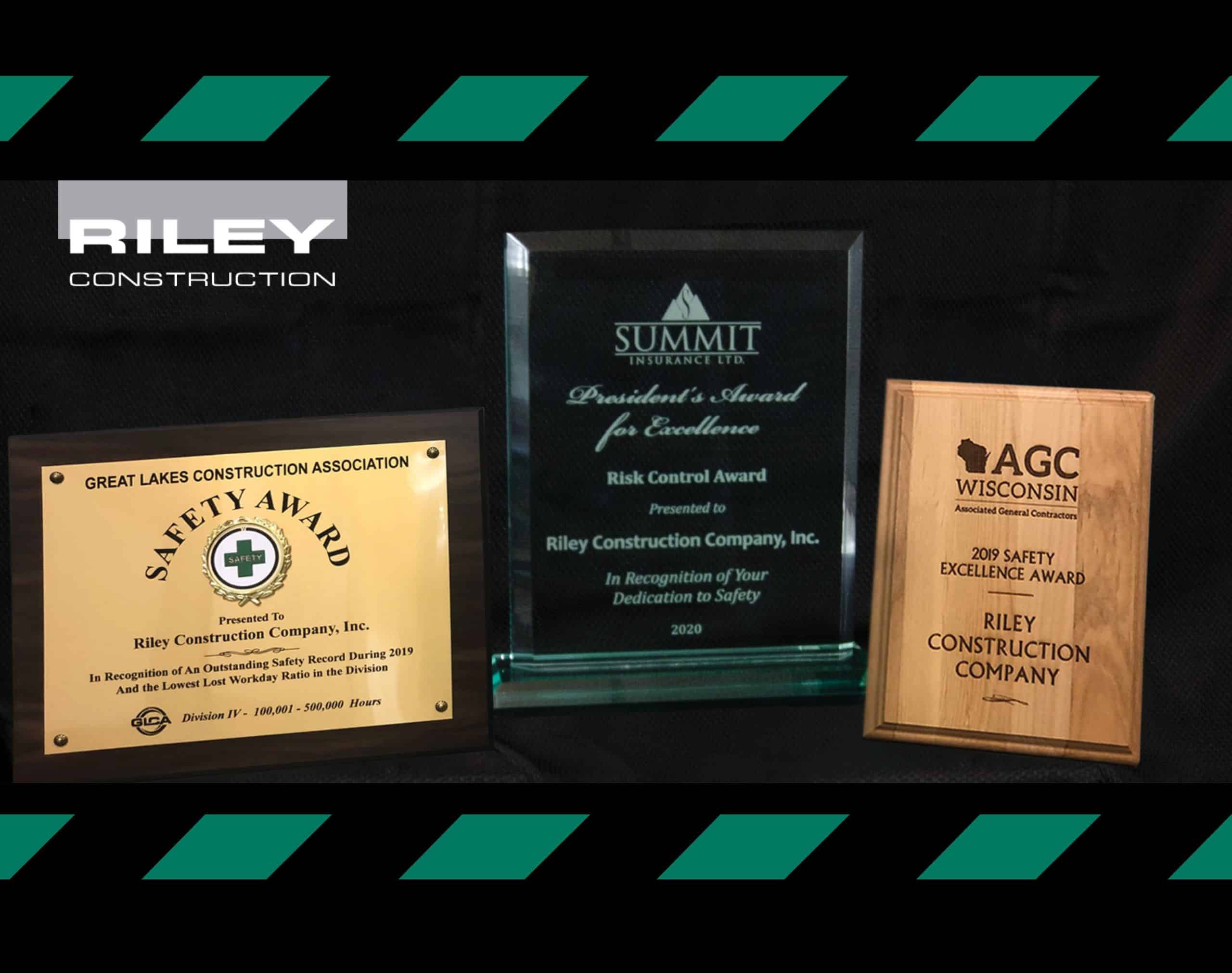 Riley is proud to announce we have recently been awarded with THREE major safety awards – The 2019 Safety Award from Great Lakes Construction Association, The 2019 Safety Excellence Award from Associated General Contractors of Wisconsin, and for the fourth year in a row, The 2020 Safety and Risk Excellence Award from Summit Insurance. This award is given to companies with safety and risk protocols that are consistently rated above the national average! Congratulations to all Riley employees for these outstanding achievements.