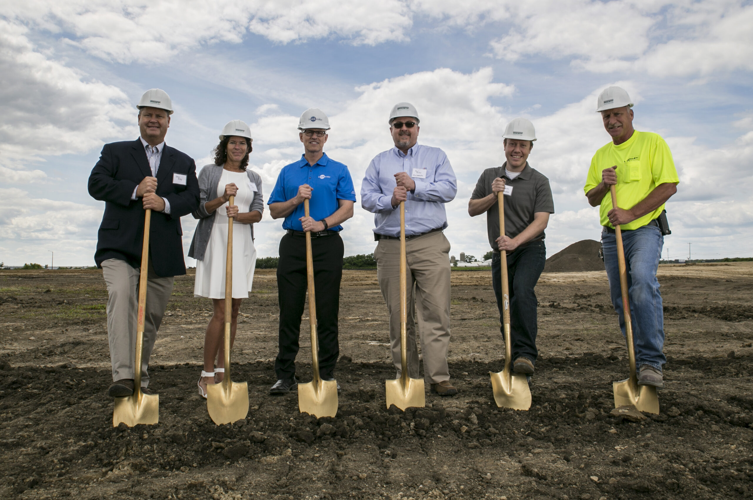 Earlier this week, the Riley team and InSinkErator held a Groundbreaking Ceremony for InSinkErator’s new Corporate Headquarters in Mount Pleasant, WI. From left to right: Dave Riley, Chairman; Barb Riley, Executive Vice President; Chad Severson, President of InSinkErator; Paul Miller, Senior Project Manager; Patrick Flaherty, Project Engineer; and Tim Herr, Project Superintendent.