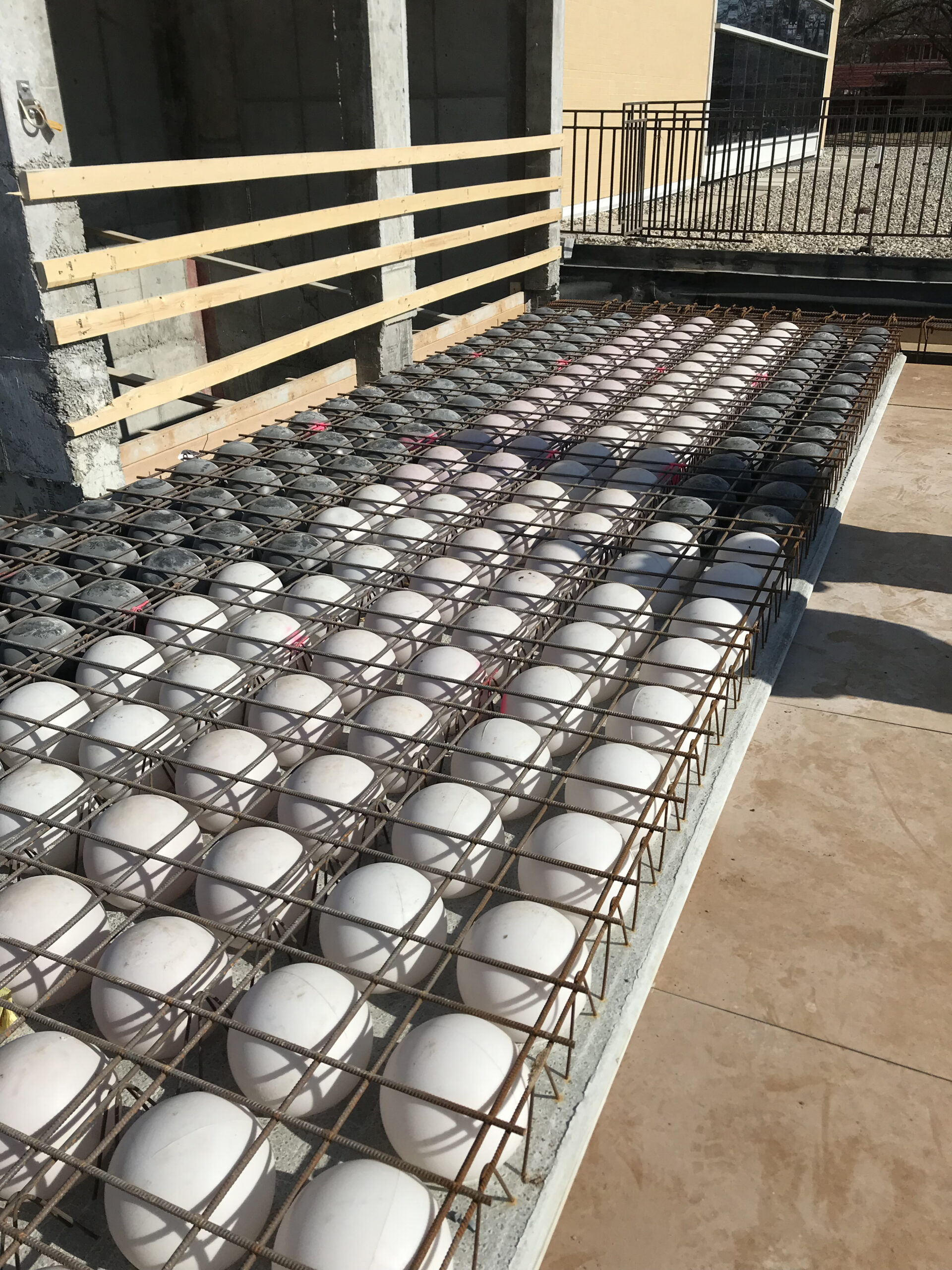 “We sourced the steel lattice gutters from Europe, where BubbleDeck originated,” Matthews explained. “The plastic bubbles came from a recycled plastic manufacturer in Madison, Wisconsin. We were able to obtain the prefabricated panels from a local precast concrete manufacturer.”