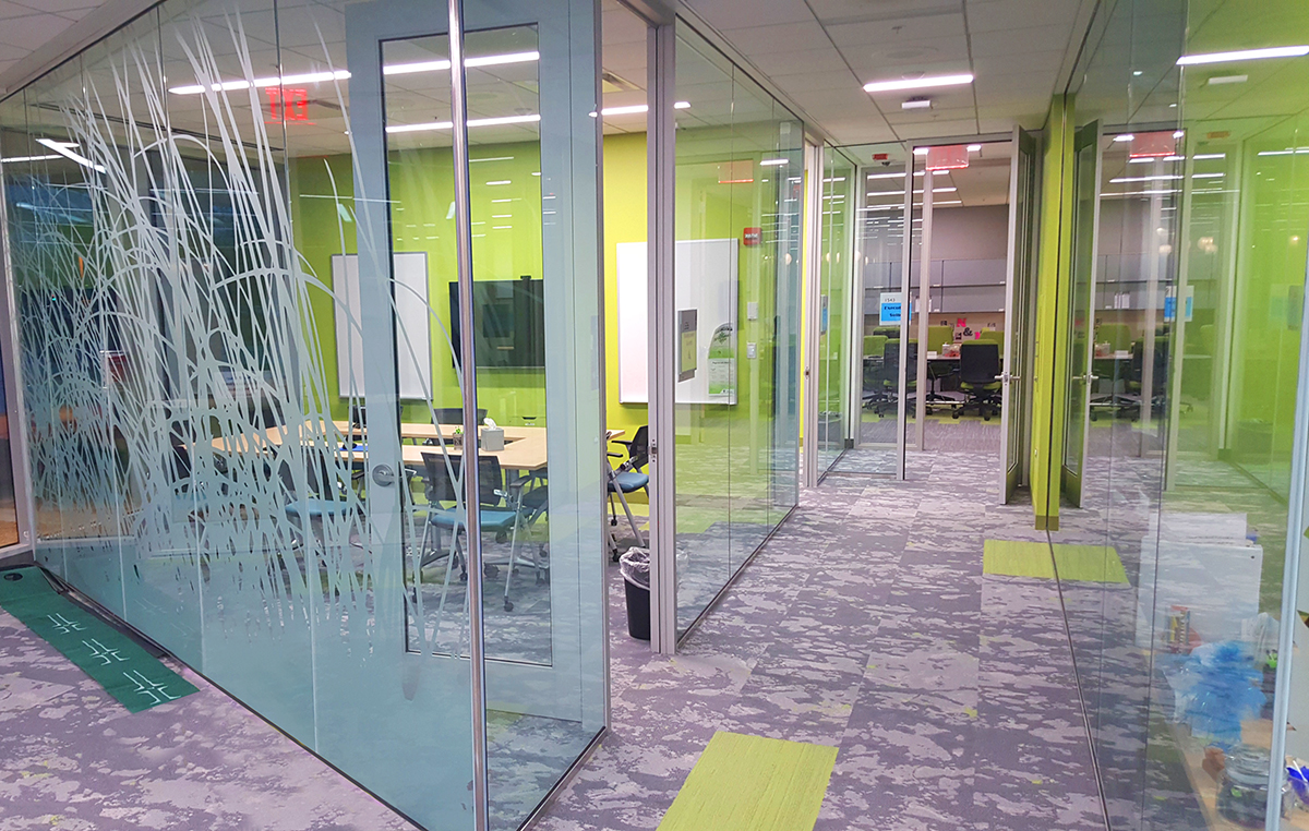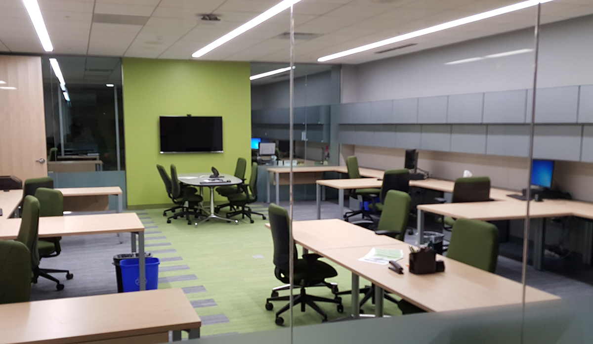 The 7,192 square-foot project is a renovation of existing business office space, converting it to a Student Gathering Center.  Some of the project challenges were the use of helical piers in an existing space to create a structural slab, as well as a sound proofing acoustically enhanced ceiling barrier drywall.  This job includes a unique barn wood wall, with barn wood material being picked from the area. As classes started and in order to work around their schedule Riley coordinated with the school in regards to noise and schedule to avoid operations disruption.